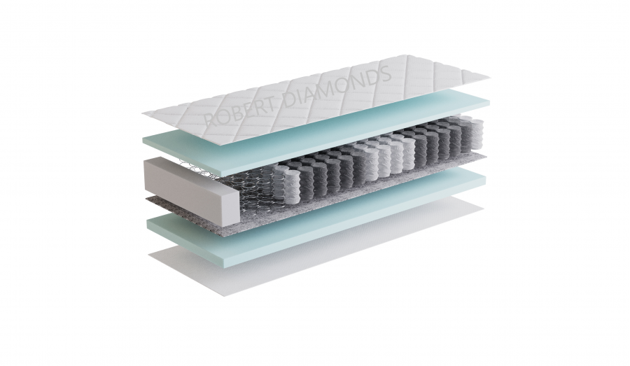 Použitý materiál PUR pena 35 kg/m3, taštičková pružina 250 ks/m2