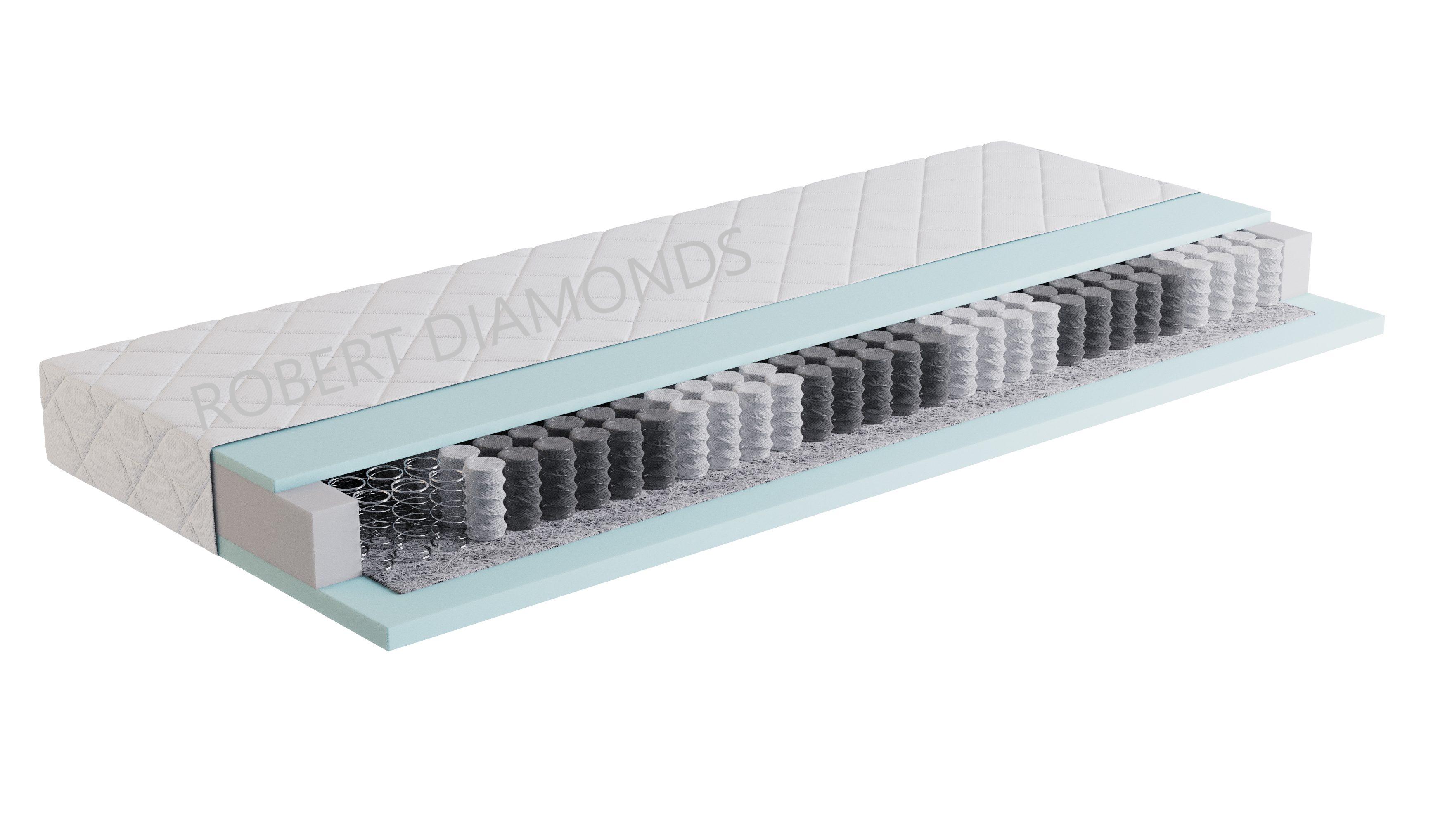 Použitý materiál PUR pena 35 kg/m3, taštičková pružina 250 ks/m2