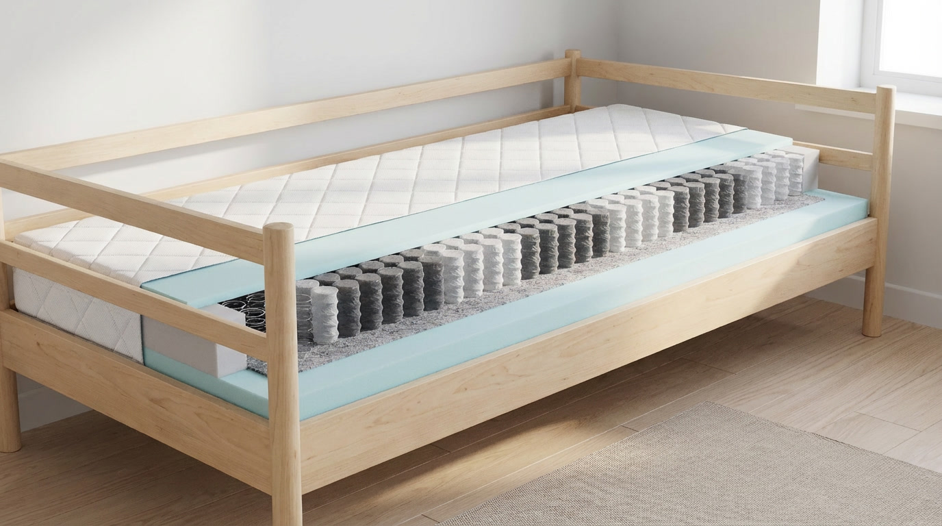 ECO MATRAC PRE DETI A DORAST je obojstranný taštičkový matrac s dvoma úrovňami tuhosti – strednou (3) a stredne tvrdou (4), ktorý je ideálne prispôsobený potrebám detí a dospievajúcich. Matrac je vyrobený z kvalitnej PUR peny s hustotou 35 kg/m³, ktorá zabezpečuje pohodlie, správnu podporu a zdravý vývoj chrbtice.