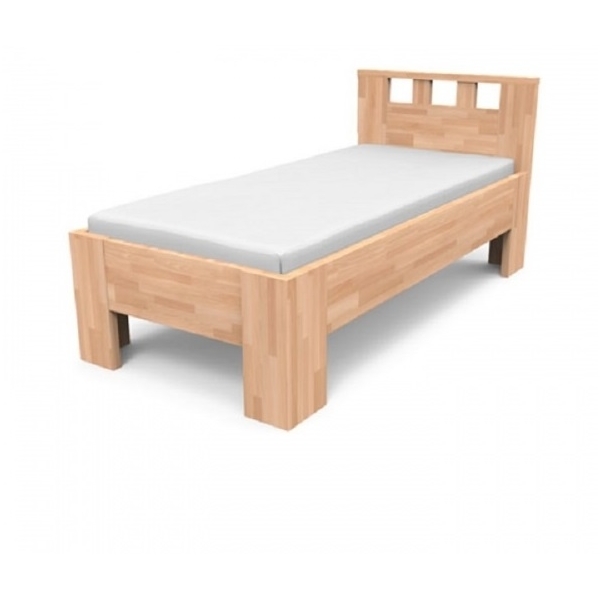 Kvalitná jednolôžková masívna posteľ KAROLÍNA upúta na prvý pohľad unikátnym čelom. Je to slovenský spálňový nábytok, vyrobený z odolného masívneho bukového alebo dubového dreva, kde hrúbka použitého materiálu je 4 cm, výška po hornú hranu bočnice je 50 cm a výška čela pri hlave je 95 cm.