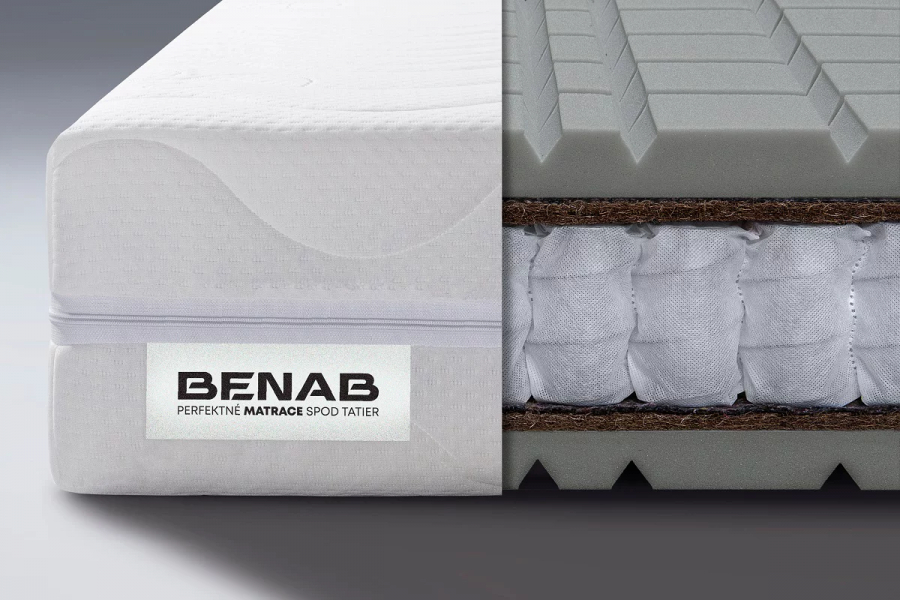 Použitý materiál PUR PENA, 2x KOKOSOVÁ VRSTVA, TAŠTIČKOVÁ PRUŽINA 7 ZÓN