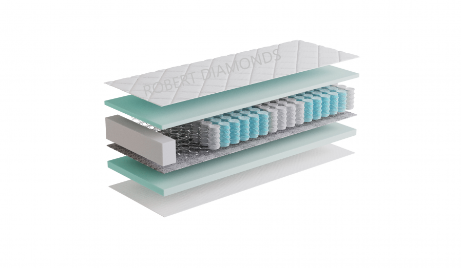 Jadro matraca kombinuje kvalitnú PUR penu s hustotou 38 kg/m³ a taštičkové pružiny (STANDART POCKET), čo zabezpečuje vynikajúcu flexibilitu a ideálnu podporu. PUR pena sa dokonale prispôsobuje tvaru vášho tela a reguluje teplotu počas spánku, čím vytvára zdravé a pohodlné prostredie bez nadmernej vlhkosti.