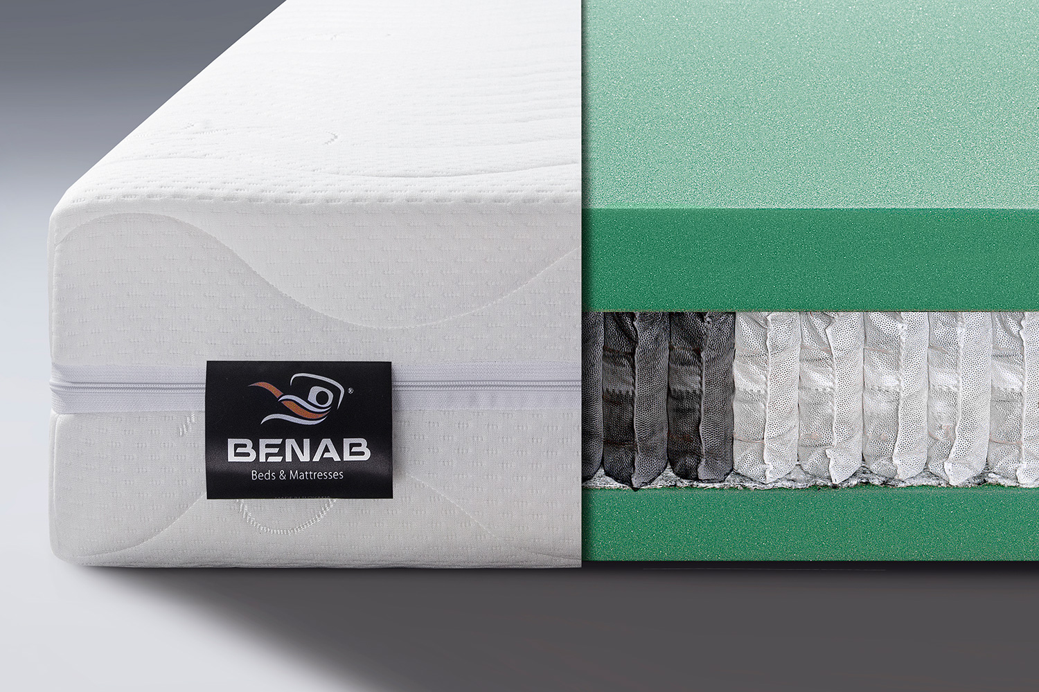 Použitý materiál BIO 40kg/m3 pena 4 cm (zelena), taštičková pružina 650 ks/m2 – 7 zon, BIO 40kg/m3 pena 4 cm (zelena)