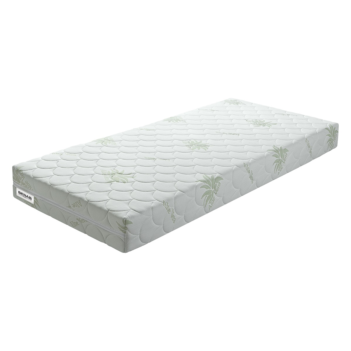 Obľúbený zdravotný matrac z VISCO elastickej pamäťovej peny a prírodného kokosového vlákna. • VISCO pena s pamäťovým efektom reaguje na teplo a tlak, optimálne sa prispôsobí krivkám Vášho tela čím uvoľňuje svalstvo a kĺby • Obdobný matrac na vyšku 18 cm ako napr. matrac TAMPA, len s ďaleko dlhšou životnosťou vďaka hustejším penám,čím hustejšia pena,tým je dlhšia životnosť matraca, obojstranne použiteľný a cenovo výhodný zdravotný matrac - stredové spevnenie a prevzdušnenie jadra pomocou kokosovej vrstvy • odporúčaný rošt lamelový • štandardné vyhotovenie v poťahu - Aloe Vera • VISCO 50 kg/m2, PUR jadro 35 kg/m3, kokosová vrstva 1300 gr/m2, PUR 30kg/m2 Poťah - ALOE VERA • poťahová látka s výťažkami z tejto rastliny obsahuje prevažne enzýmy, minerálne látky a aminokyseliny, ktoré veľmi pozitívne pôsobia na pokožku a posilňujú relaxačné účinky spánku • príjemne mäkký poťah so schopnosťou regenerácie pokožky ľudského tela, vlastnosti tejto látky zaručujú dostatočnú hygienu • certifikovaný a zdravotne nezávadný OEKO-TEX štandard • zloženie: 85 % polyester; 15 % viskóza, obohatený o výťažky z aloe vera, poťah prešitý s klimatizačnou výplňou, PES vláknom 250 gr/m2 •antibakteriálny, antiroztočový, odzipsovateľný a prateľný do 60°C