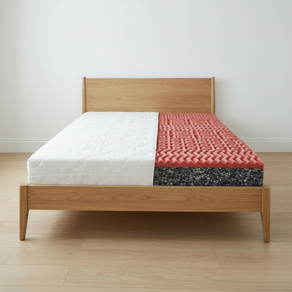 POE/RE PENA RE pena je recyklovaná drvená polyuretánová pena a vyrába sa spájaním rôznych materiálov pod silným tlakom. RE pena dodáva matracom vyššiu tuhosť a teda aj nosnosť.