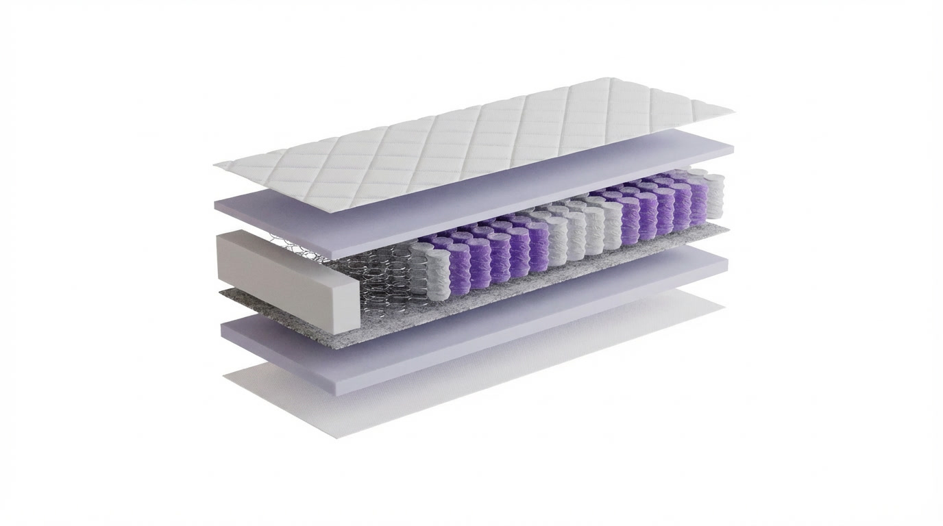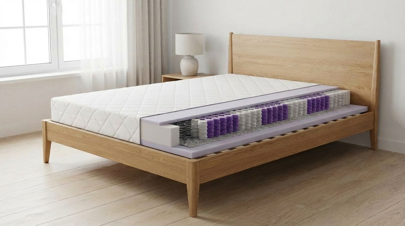 Použitý materiál PUR pena 30 kg/m3, taštičková pružina 250 ks/m2