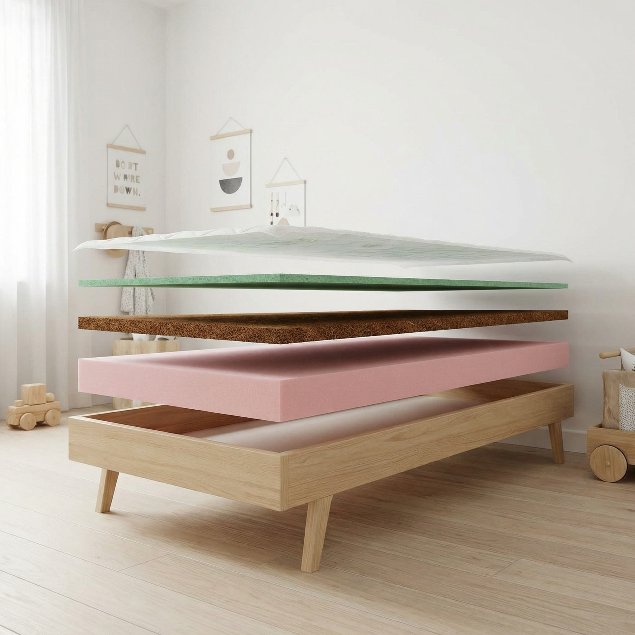 Medzi týmito vrstvami sa nachádza kokosové vlákno, ktoré dodáva matracu potrebnú pevnosť a stabilitu. Kokosová vrstva je odolná voči vlhkosti a baktériám, čo zvyšuje hygienu a podporuje zdravý vývoj chrbtice.