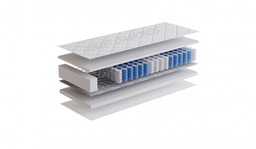 Jadro matraca tvoria samostatné taštičkové pružiny, ktoré presne kopírujú tvar tela a zabezpečujú správnu ortopedickú oporu chrbtici. Tento systém rovnomerne rozkladá tlak na telo, čo pomáha zmierniť svalové napätie a prispieva k zdravému a pokojného spánku.
