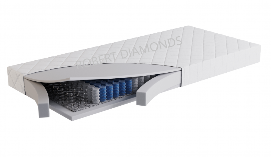 Použitý materiál PUR pena 38 kg/m3, taštičková pružina 250 ks/m2