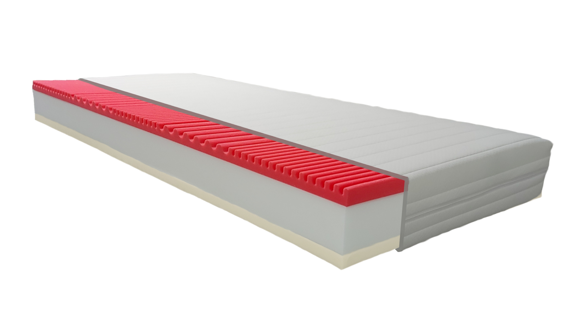 Použité materiály zabezpečujú optimálnu oporu tela a dlhú životnosť – VISCO pena 52 kg/m³ / PUR pena so 7-zónovým profilom 30 kg/m³ a PUR jadro 30 kg/m³.