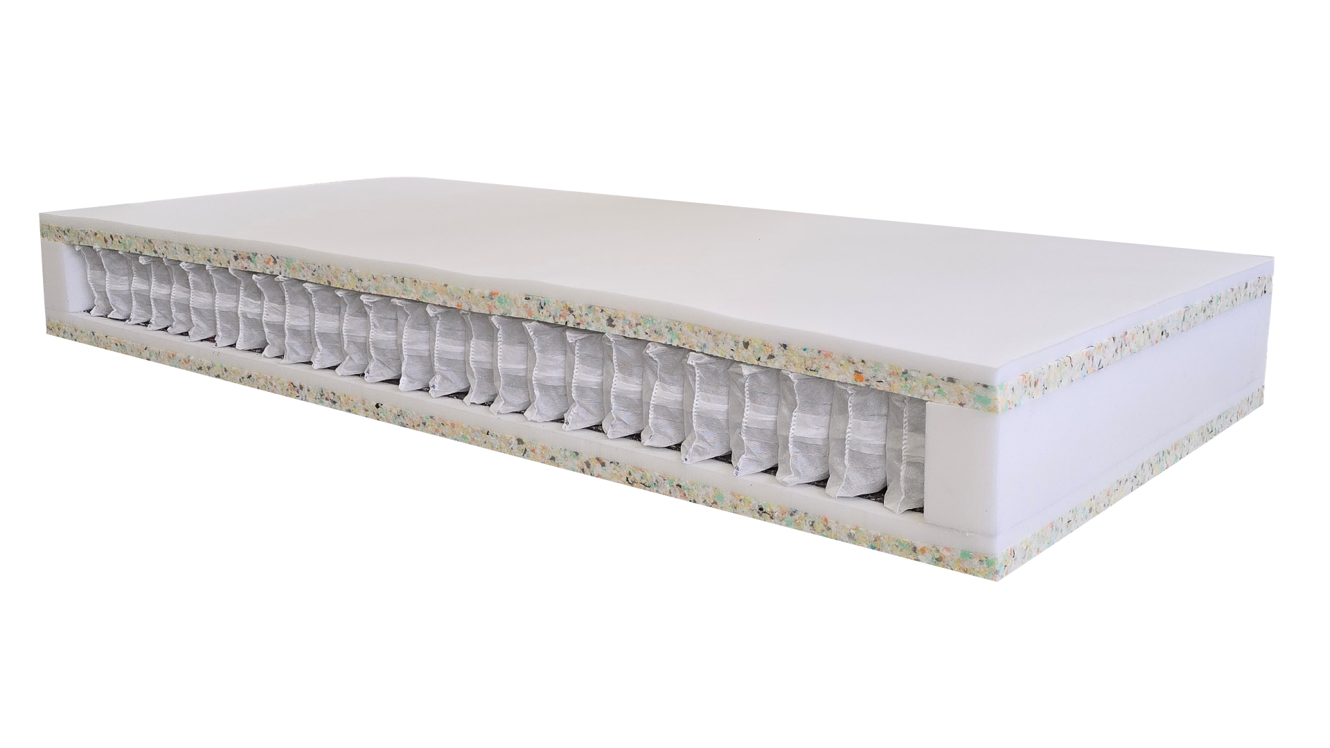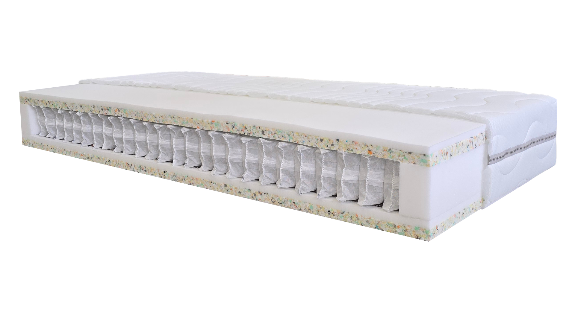 Použitý materiál PUR pena 35 kg/m3, POE 70 kg/m3 taštičková pružina 250 ks/m2
