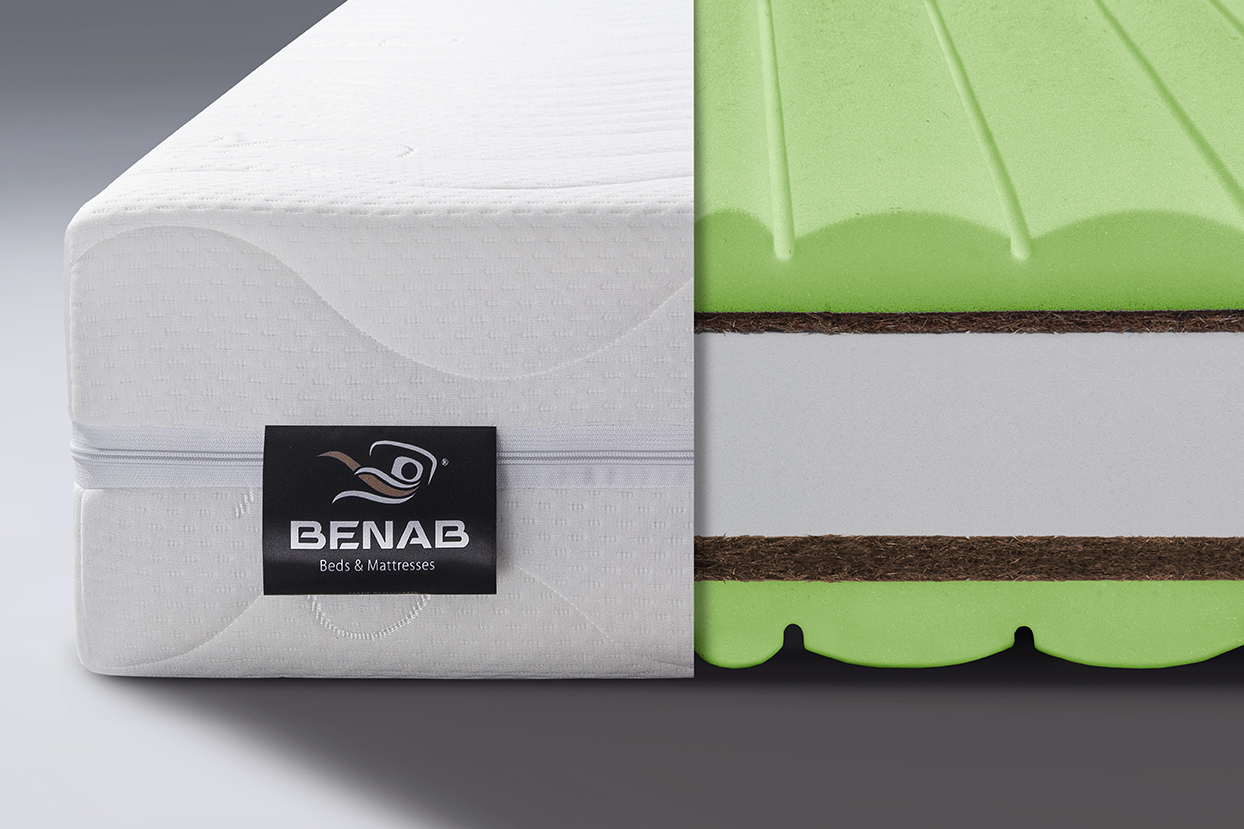 Jadro matraca tvorí kombinácia kvalitných materiálov – HR pena s hustotou 40 kg/m³ a PUR pena s hustotou 28 kg/m³, ktoré poskytujú pevnú, ale zároveň pružne reagujúcu oporu. Tvrdosť oboch strán je zosilnená kokosovou vrstvou s gramážou 1300 g/m², v hrúbkach 1 cm a 2 cm, čo zvyšuje celkovú stabilitu matraca a zlepšuje jeho priedušnosť.