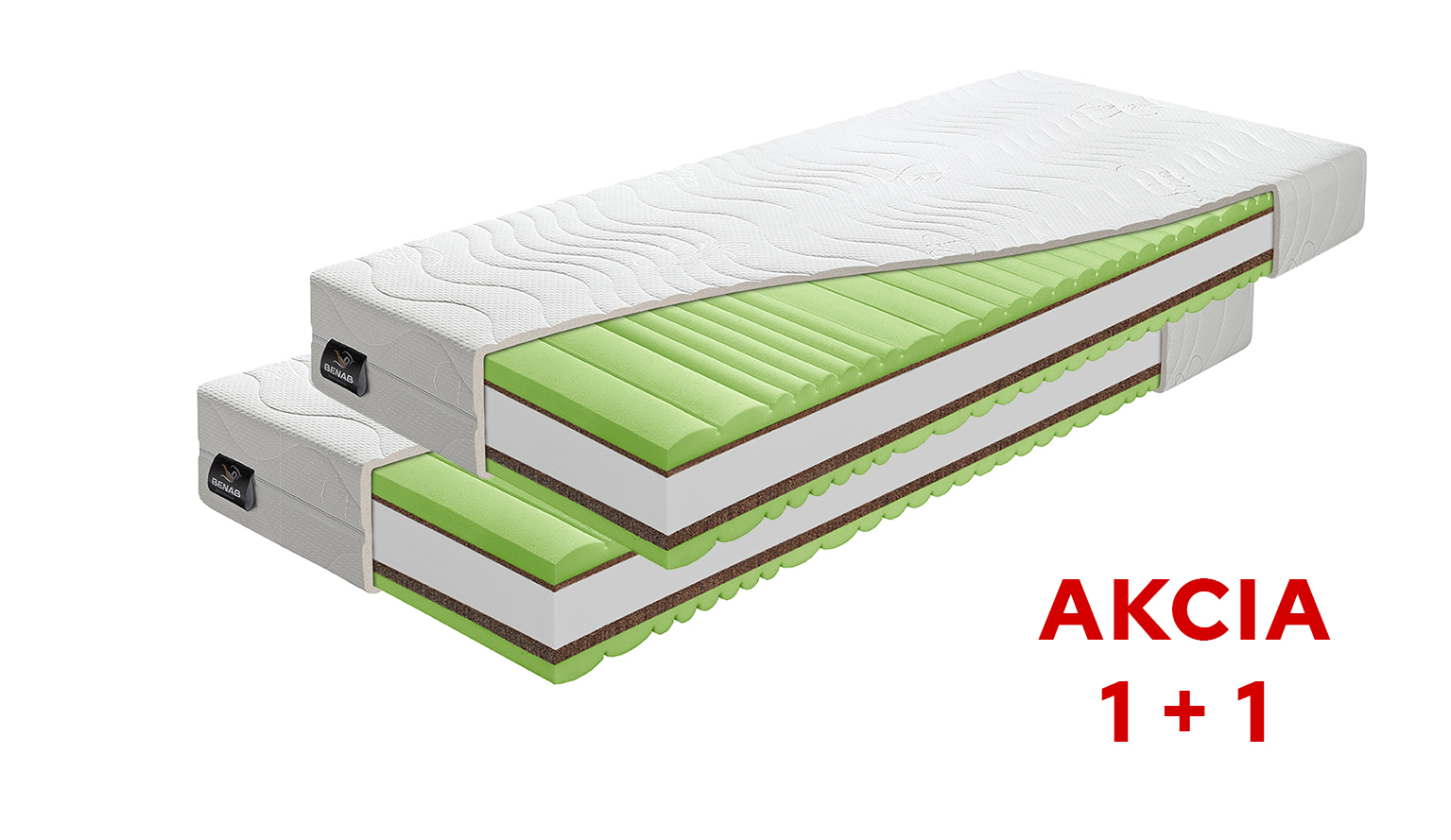 Použitý materiál HR pena 40 kg/m3, PUR pena 28kg/m3, kokosová vrstva 1300 gr/m2, hrúbka 1 + 2 cm
