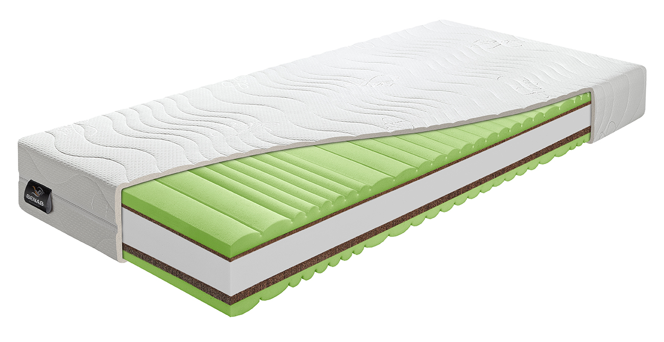 Jadro matraca tvorí kombinácia kvalitných materiálov – HR pena s hustotou 40 kg/m³ a PUR pena s hustotou 28 kg/m³, ktoré poskytujú pevnú, ale zároveň pružne reagujúcu oporu. Tvrdosť oboch strán je zosilnená kokosovou vrstvou s gramážou 1300 g/m², v hrúbkach 1 cm a 2 cm, čo zvyšuje celkovú stabilitu matraca a zlepšuje jeho priedušnosť.