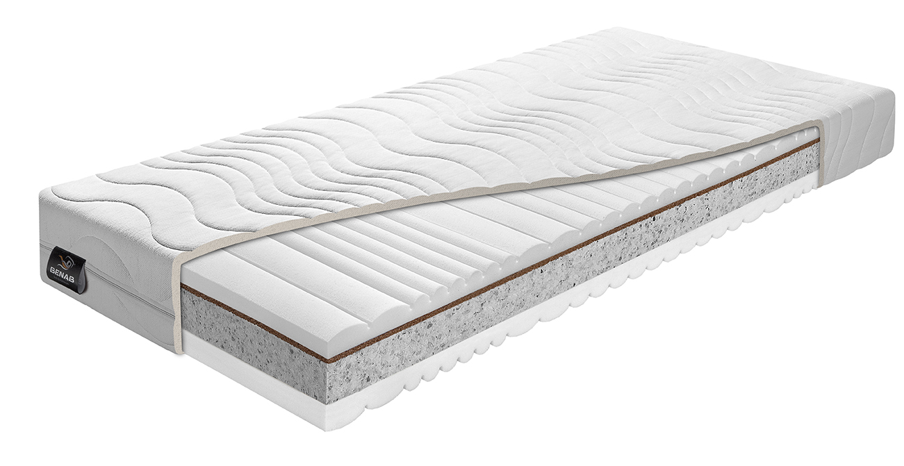 Použitý materiál PUR 7 zón profil 30 kg/m3, POE/RE pena 70 kg/m3, kokosová vrstva 1300 gr/m2