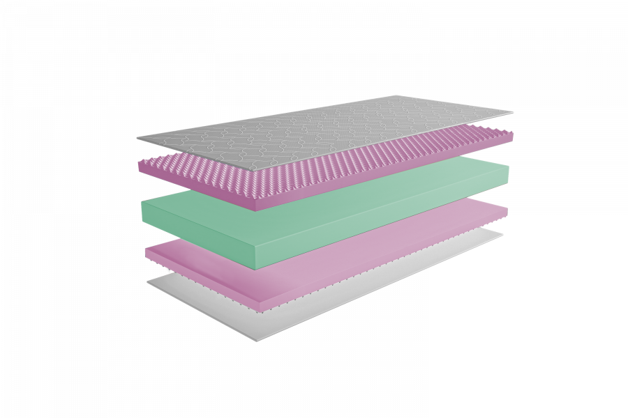 Jadro matraca tvorí PUR pena s vysokou hustotou 35 kg/m³, ktorá zabezpečuje výbornú stabilitu, odolnosť a dlhodobé zachovanie tvaru. Táto pena rovnomerne rozkladá tlak, čím prispieva k zdravému držaniu chrbtice a znižuje riziko preležanín.