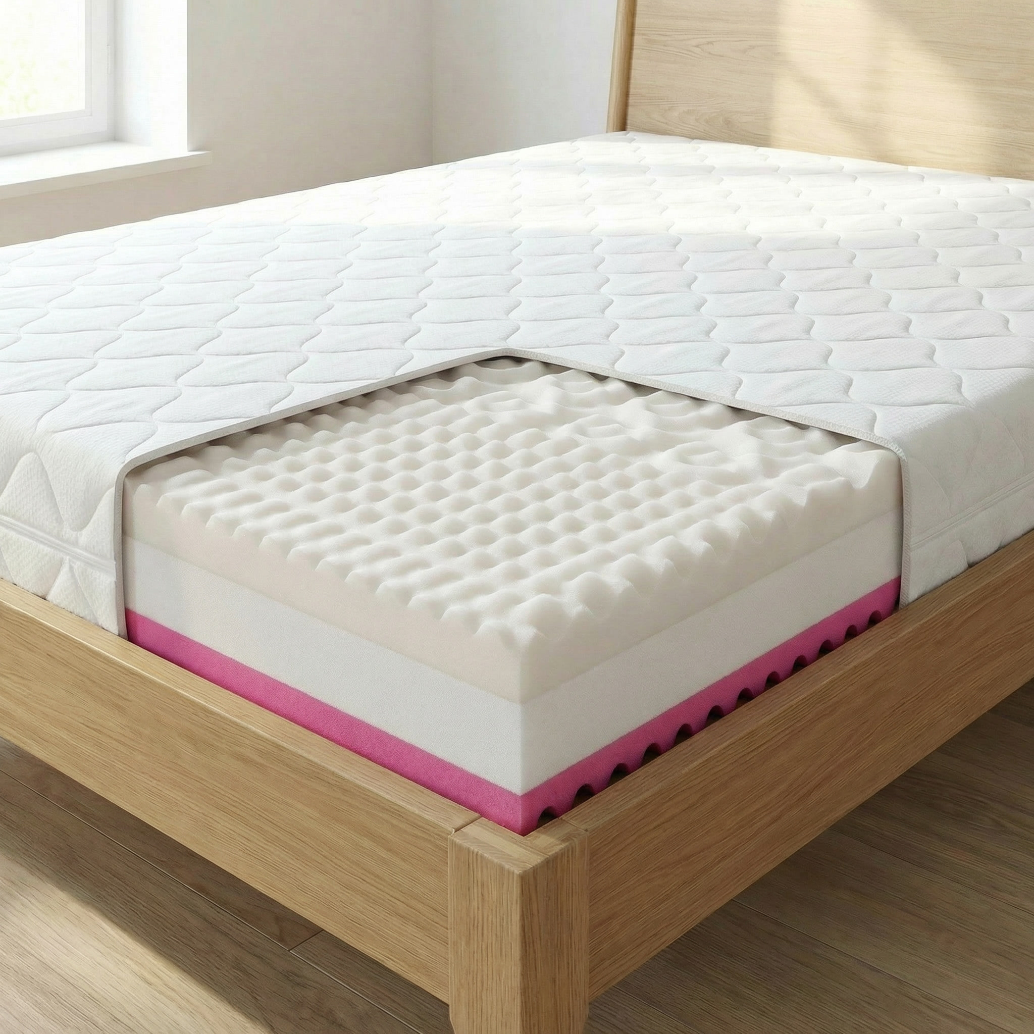 90% našich zákaznikov si rovno k matracom automaticky hneď doobjednáva antibakteriálny protiroztočový chránič matraca,ktorý šijeme z moderného trojvrstvového mikrovlákna. Chránič sa dáva navrch matraca,po rohoch ma napinacie pásy a upne sa o roh matraca a je na pevno,nešmíka sa po povrchu matraca. Chráni matrac pred roztočami, baktériami, vlhkosťou, plesňami, čím predlžujeme životnosť matraca a zvyšuje hygienu lôžka,pretože mikrovlákno je taká textília,ktorá dokáže absorbovať pot,špinu,baktérie,odumretú pokožku, vlasy, lupiny. Jednoduchá údržba chrániča,perieme na 60tke,podľa potreby,dvakrát do mesiaca. Z pohľadu toho,že chránič nieje investícia na pár dni alebo tyždeň,ale máte to na roky.Určite je to vec na nezaplatenie.Cena 43€ platí pre jednolôžka do rozmeru 200x90cm.Ostatné ceny jednolôžka 200x100cm a 200x120cm sú uvedené v sekcii DOPLNKY.Vyrábame aj atypické rozmery chráničov.