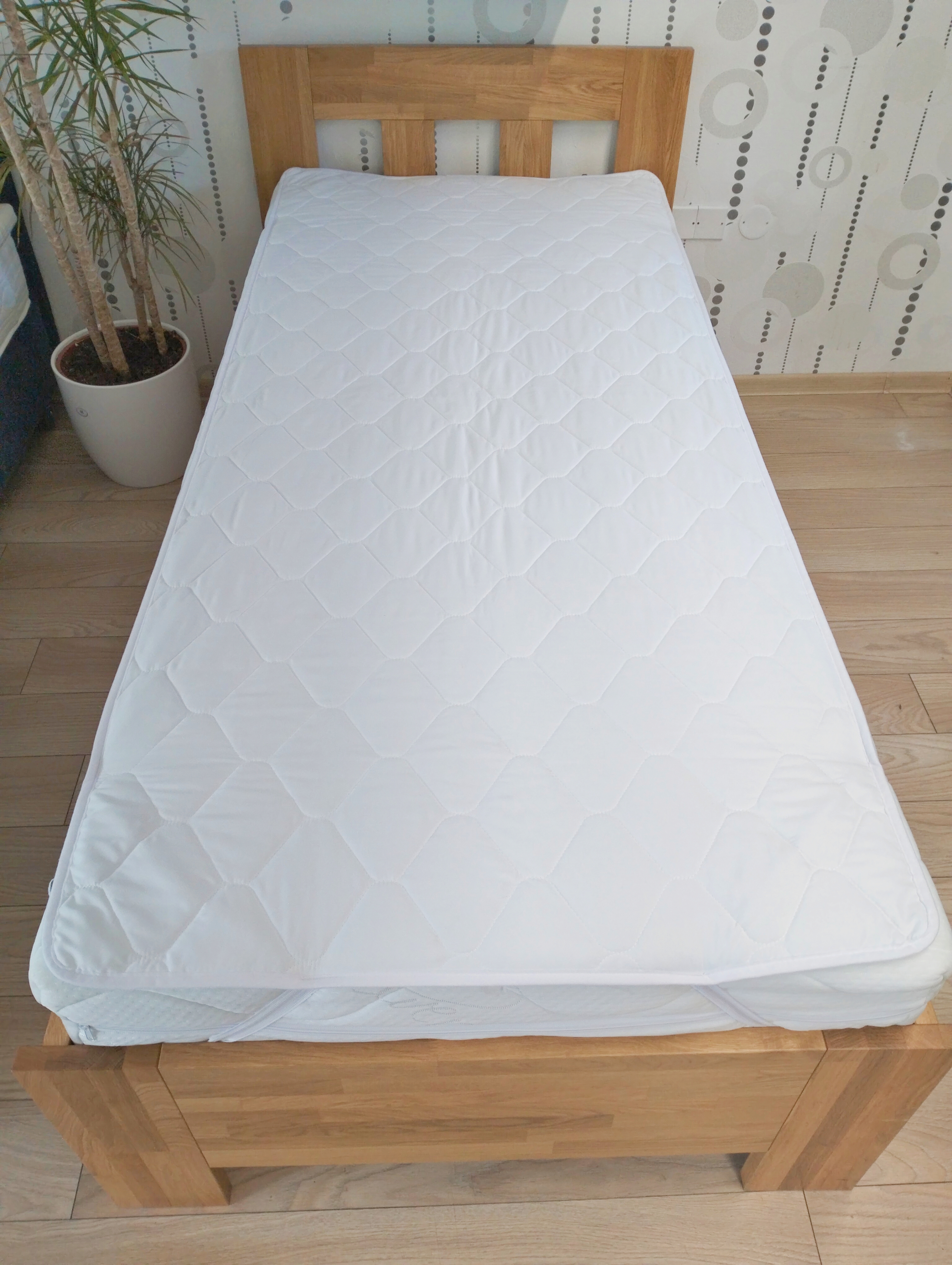 90% našich zákaznikov si rovno k matracom automaticky hneď doobjednáva antibakteriálny protiroztočový chránič matraca,ktorý šijeme z moderného trojvrstvového mikrovlákna. Chránič sa dáva navrch matraca,po rohoch ma napinacie pásy a upne sa o roh matraca a je na pevno,nešmíka sa po povrchu matraca. Chráni matrac pred roztočami, baktériami, vlhkosťou, plesňami, čím predlžujeme životnosť matraca a zvyšuje hygienu lôžka,pretože mikrovlákno je taká textília,ktorá dokáže absorbovať pot,špinu,baktérie,odumretú pokožku, vlasy, lupiny. Jednoduchá údržba chrániča,perieme na 60tke,podľa potreby,dvakrát do mesiaca. Z pohľadu toho,že chránič nieje investícia na pár dni alebo tyždeň,ale máte to na roky.Určite je to vec na nezaplatenie.Cena 43€ platí pre jednolôžka do rozmeru 200x90cm.Ostatné ceny jednolôžka 200x100cm a 200x120cm sú uvedené v sekcii DOPLNKY.Vyrábame aj atypické rozmery chráničov.