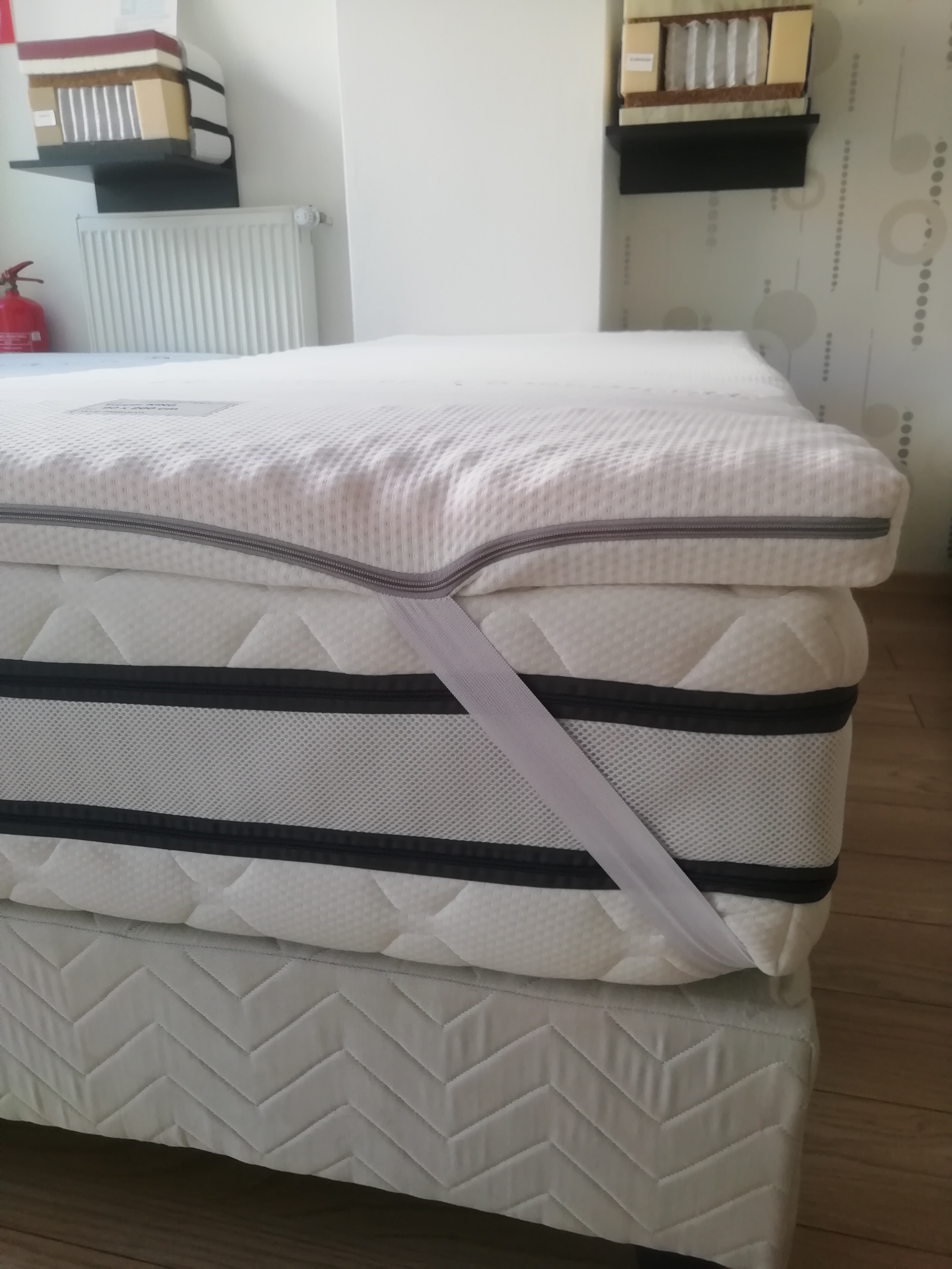 Topper je vyhotovený v poťahu Mediccot Silver, ktorý svojou kvalitou a zložením patrí medzi najlepšie na trhu, má vynikajúce antibakteriálne vlastnosti dosiahnuté bez použitia chemických látok, splna prísne podmienky kvality OEKO-TEX, je odzipsovateľný a prateľný na 40°C.