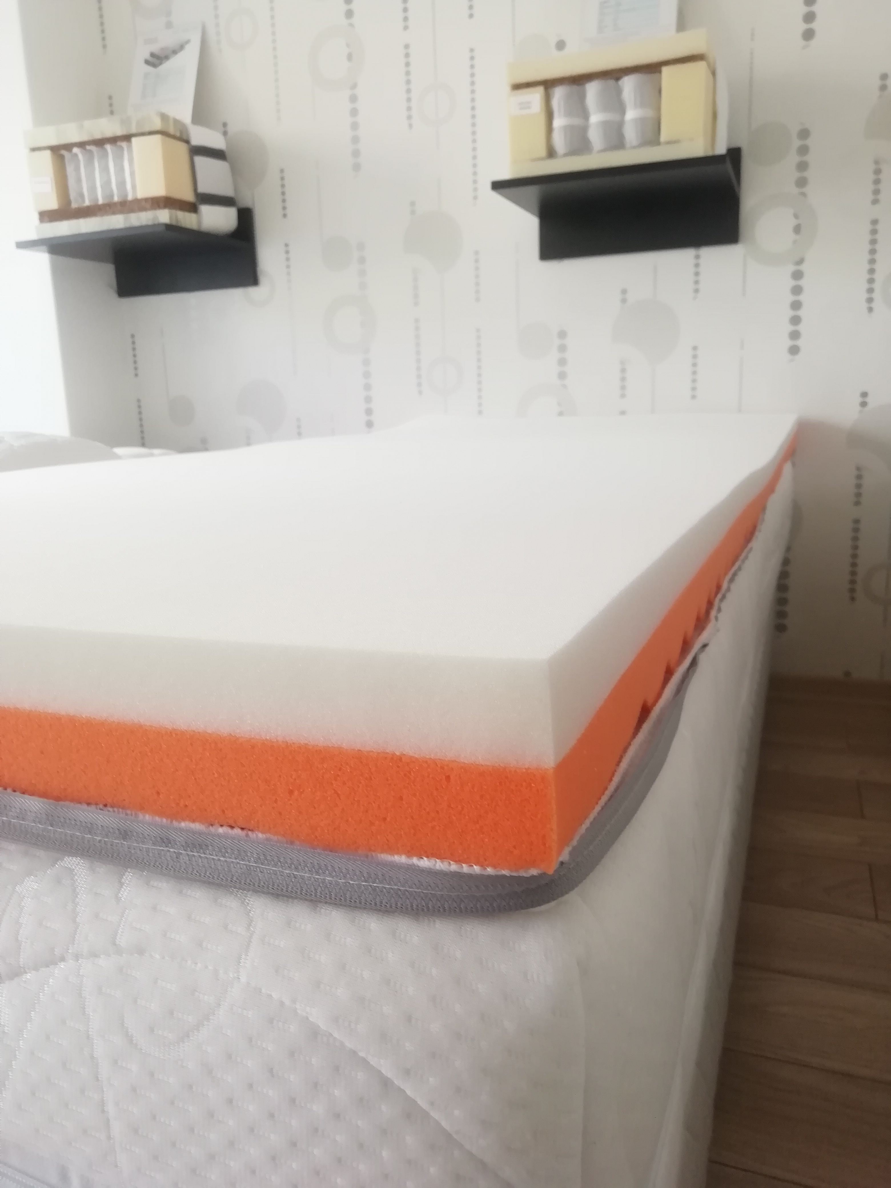 Určite neprehliadnete aj široké upínacie pásy po bokoch, vďaka ktorým sa topper jednoducho upne o spodný matrac a nešmýka sa tak po povrchu.Pozrite obrázky. Vrchné matrace vyrábame aj v atypických rozmeroch a v prípade záujmu o atyp nas kontaktujte telefonický alebo emailom.
